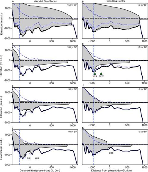 Het heeft te maken met postglaciale opheffing: het opveren van de bodem als de druk daar op afneemt omdat de ijskap na een ijstijd kleiner wordt. Dat gebeurde ook met de zeebodem rond het Antarctische continent. De zee werd dus minder diep en dit remde de beweging van het ijs in mariene gletsjers. Vooral richels op de zeebodem hebben zo’n afremmend effect. De zeebodem bij West-Antarctica heeft een structuur waar dergelijk richels veel voorkomen.