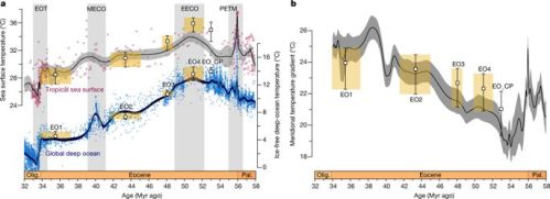 Ik sta versteld van deze hoge zeetemperaturen, het zeeleven moet het moeilijk gehad hebben met bijna meer dan 37°C aan het oppervlak gedurende het PETM. Niet dat ik het niet zou geloven, maar het zijn vrij extreme temperaturen voor het (huidige) metabolisme. Indrukwekkend.