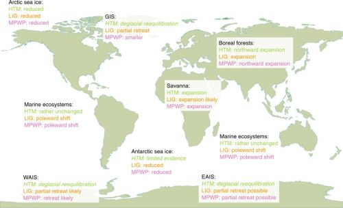 De afbeelding hieronder geeft een aantal andere karakteristieken van eerdere warme periodes.
