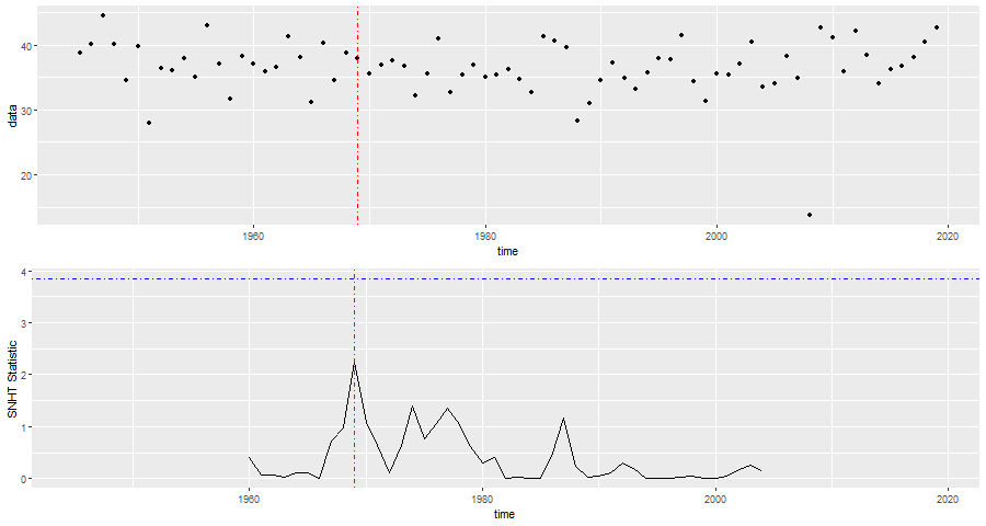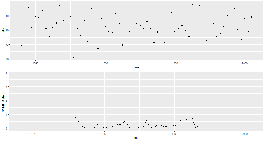 De SNHT detecteert de breuk in de tijd dus ongeveer halverwege de laatste twee verplaatsingen.