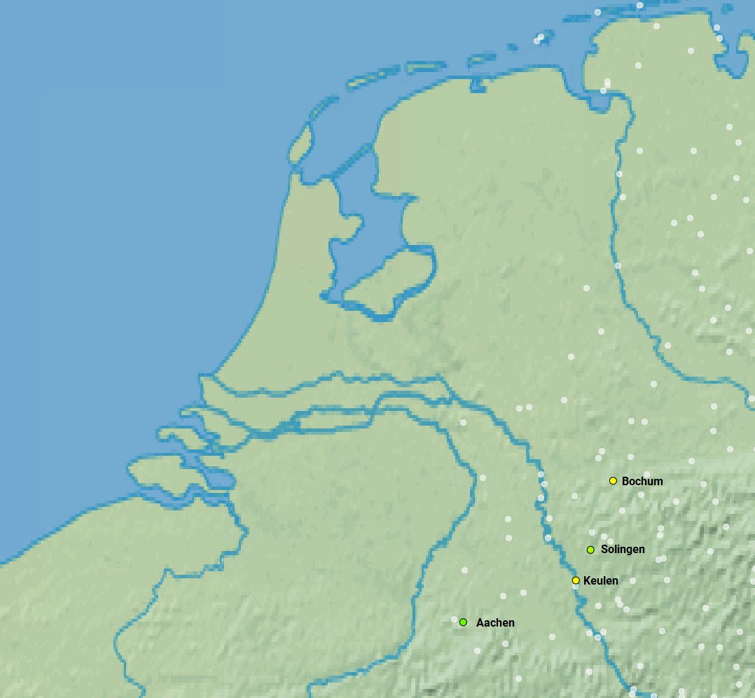 De kandidaten met beschikbare data vanaf 1 januari 1945 t/m 31 december 1956 zijn Aachen, Solingen-Hohenscheid, Köln-Stammheim en Bochum.