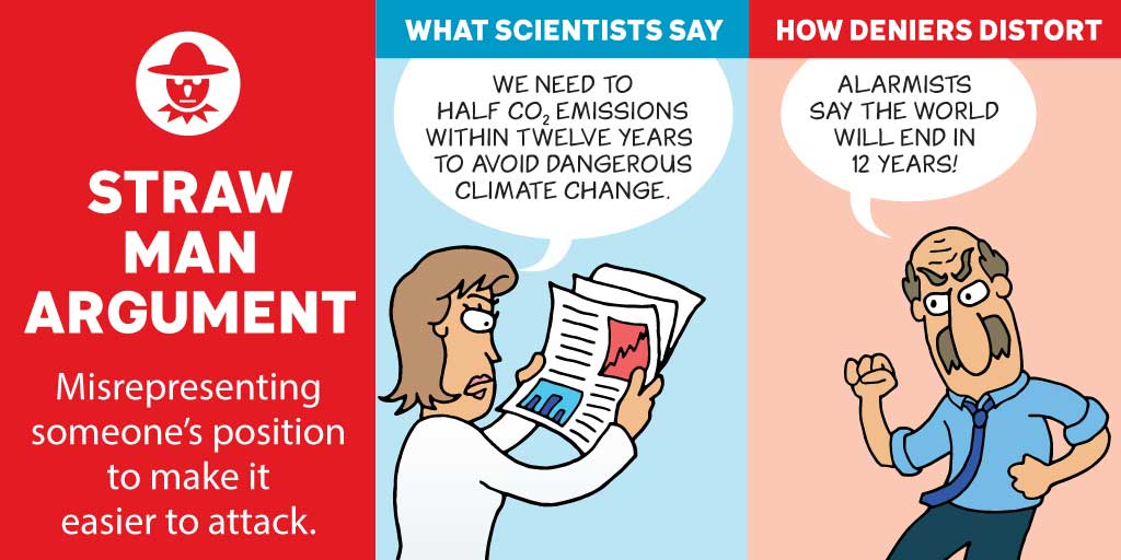 Een eenvoudig retorisch trucje als “op de persoon spelen” is zeer geschikt om de geloofwaardigheid te ondermijnen. Denk bijvoorbeeld aan klimaatwetenschappers of pleitbezorgers met een alarmerende boodschap die ten onrechte alarmistisch worden genoemd. Of aan ‘stropoppen’ over bibberende geitenwollensokkendragers en zwart-witfoto’s waarin duurzaam gedrag gekoppeld wordt aan karikaturen.