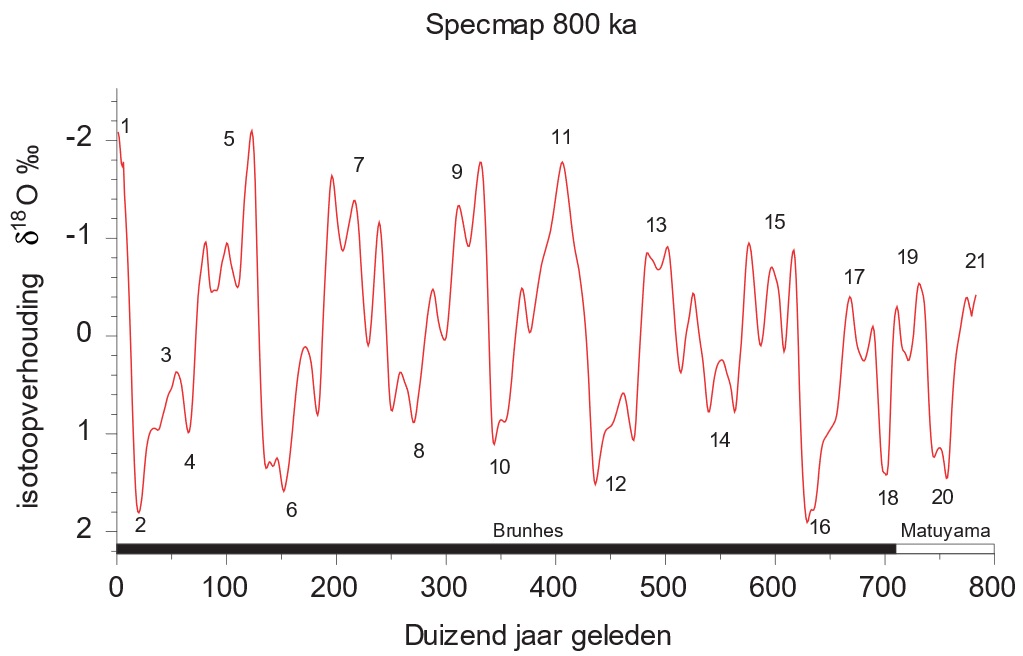 Overzicht van de Mariene Isotopen Stages in de afgelopen 800.000 jaar