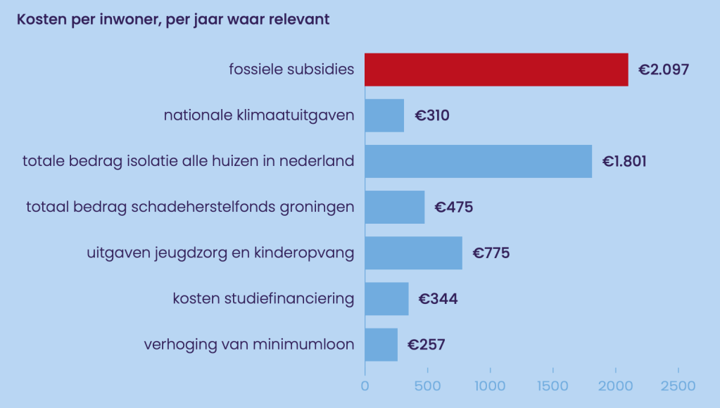 Een nieuw onderzoek stelt dat de Nederlandse overheid de fossiele sector de afgelopen jaren jaarlijks met 37,5 miljard euro steunt. Onderzoeksbureau SOMO en milieuorganisaties Milieudefensie en Oil Change International brachten dit in kaart na er de afgelopen maanden grondig naar te hebben gekeken. In hun persbericht stellen ze dat er 31 verschillende financiële regelingen zijn onderzocht in de periode 2020 – 2022. Het rapport volgt definities en methodologie die ook door de overheid worden omarmd. De kwestie rondom de definitie van een subsidie is overigens al beslecht, dus ga ik hier niet op in. Maar wat betekent dit nieuwe rapport, en hoe komt het dat deze nieuwe analyse een nog hoger bedrag aan fossiele subsidies presenteert dan in eerdere analyses?