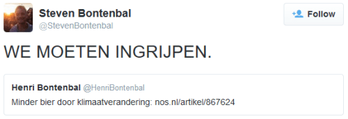 Vorige week zag ik op de NOS website het volgende bericht: Minder bier door klimaatverandering. Dit leidde onder studenten even tot een lichte uitbraak van paniek: