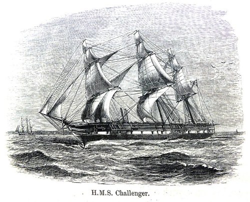 HMS Challenger, het schip waarmee in de periode 1872 – 1876 metingen werden gedaan van de temperatuur in de diepe Stille Oceaan. Bron: The Royal Albert Memorial Museum, HMS Challenger Project